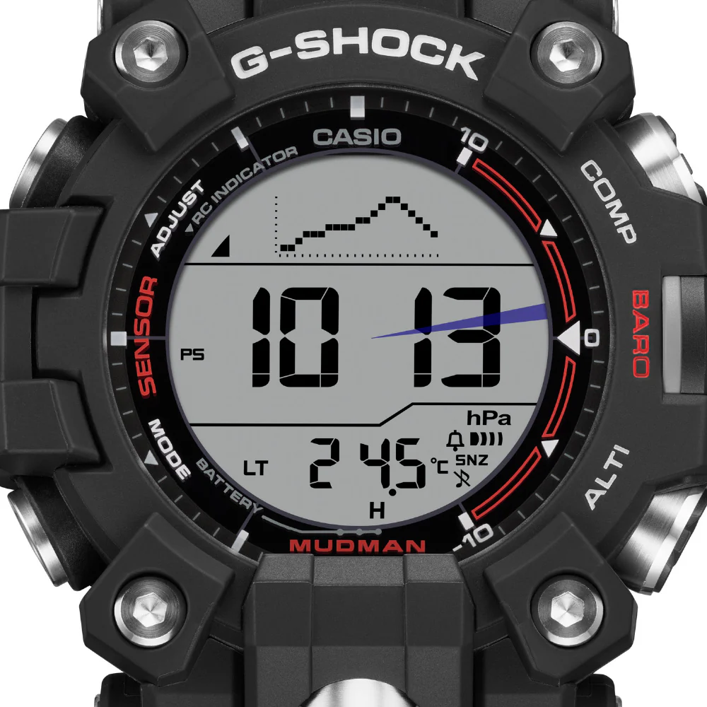 | From the G-SHOCK MASTER OF G series that supports men facing harsh natural environments, comes the MUDMAN triple sensor model equipped with a mud-resistant structure. | |
